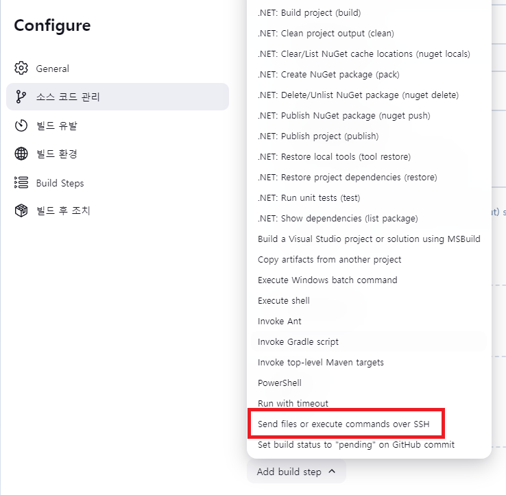 (만약 Publish over SSH가 보이지 않는다면 Publish over SSH 플러그인을 설치해 주자.)