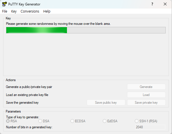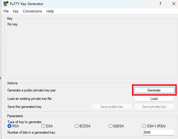Putty를 이용해서 리눅스에 접근하기 위해서는 SSH 키를 통한 보안 연결이 필요하다. 이를 위해서는 우선 PuTTYgen을 이용해서 SSH 키를 발급받도록 하자. PuTTY를 설치했다면 PuTTYgen도 같이 설치되어 있을 것이다. 해당 프로그램을 실행하도록 하자.
