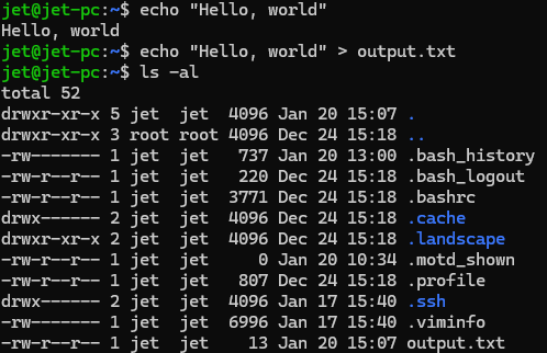 echo "Hello, world" > output.txt