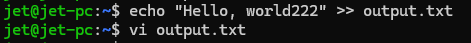 - output.txt 파일에 "Hello, world"가 저장된다.