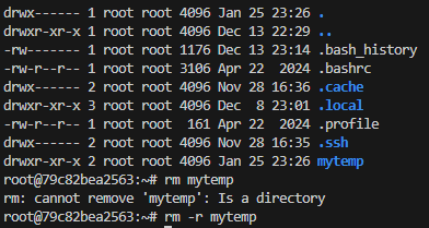 파일 위치에 하나 이상의 파일 이름을 명시하면 해당 파일이 삭제된다. 디렉터리를 삭제하려면 -r 옵션을 추가하면 된다.
