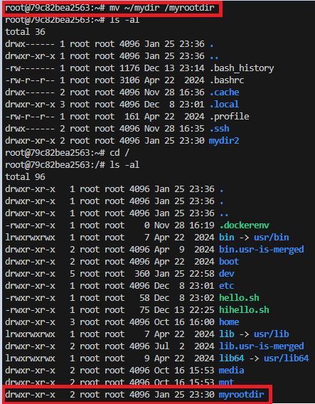 파일 이동에는 mv(move) 명령어를 사용한다.