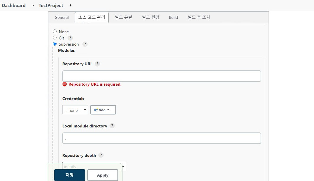 // Subversion Credentials 추가