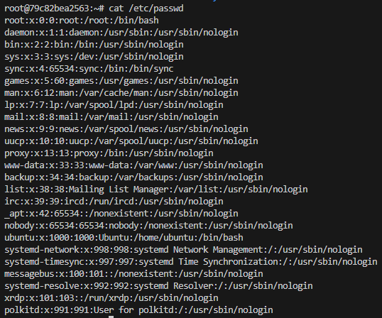 리눅스 시스템에 등록된 사용자에 대한 정보는 /etc/passwd라는 파일에서 관리한다. /etc/passwd 파일의 내용을 살펴보면서 사용자의 속성을 알아보자. 다음과 같이 cat 명령어로 /etc/passwd 파일을 조회하면 시스템에 등록된 사용자 목록과 정보를 확인할 수 있다.