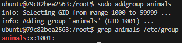 $ sudo addgroup animals