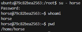 ubuntu에서 horse로 사용자 이름이 변경된 것을 확인할 수 있다. 이때는 해당 사용자의 비밀번호를 입력해야 한다.