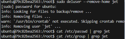 $ sudo deluser --remove-home [username]