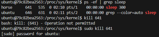 이번에는 "Terminated" 메시지가 아니라 "Killed" 메시지가 출력되면서 프로세스가 종료된 것을 확인할 수 있다. 이는 단순히 kill 명령을 내렸을 때와 달리 강제 종료됐음을 의미한다.