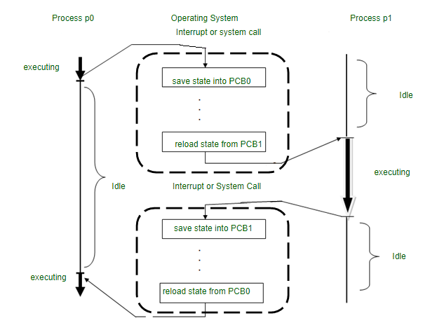 - 예외(exception) : 프로세스 실행중 예외가 발생하면 해당 예외를 처리하는 동안 다른 프로세스로의 컨텍스트 스위칭이 일어난다.