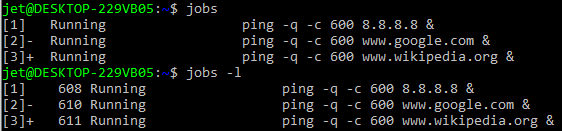 - -l : 작업을 나열하면서 PID도 출력한다.