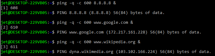 ping 프로그램을 몇 개를 백그라운드에서 실행해 보자.