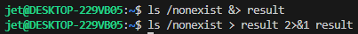 2>&1을 입력하면 위에 예제와는 미묘하게 다른 결과값을 얻을 수 있다.