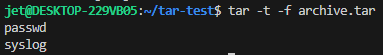- -t : 아카이브 파일의 내용을 목록으로 만든다.
