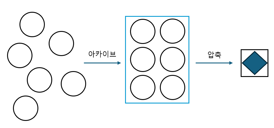 아카이브(Archive)는 여러 파일과 디렉터리르 한 덩어리로 만드는 것을 뜻한다. 압축이 아니라 단순히 파일을 붙였다고 생각할 수 있는데, 여기에 gzip, uzip2, xz와 같은 압축을 적용하면 흔히 말하는 압축 파일이 된다.