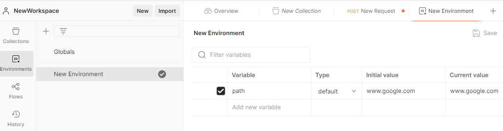 이제 Collection 하위에 'New Request'가 생성되었다.