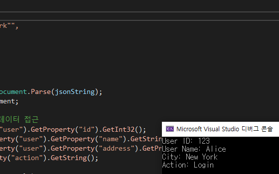 - C#에서는 System.Text.Json의 GetProperty()를 통해서 점 표기법을 활용 가능하다.