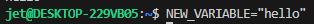 NEW_VARIABLE이라는 변수에 hello라는 문자를 저장하려면 다음과 같이 작성한다. 값은 큰따옴표(")나 작은따옴표(')로 감싸도 되고, 감싸지 않아도 된다. 큰따옴표로 감싸는 것이 일반적이다. 값을 큰따옴표나 작은따옴표로 감싸는 것을 쿼팅(quoting)이라고 한다.