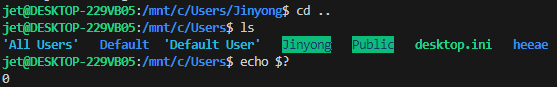 ls 명령어를 실행하면 디렉터리의 파일 목록을 출력한다. 이때 ls 명령어를 실행한 프로세스의 종료 코드는 $? 변수에 저장된다. 홈 디렉터리로 가서 ls 명령어의 종료 코드를 출력해 보자.