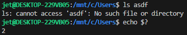 이번에는 실패하는 명령을 실행해 보자. ls로 존재하지 않는 asdf라는 파일을 조회해 보자. $? 변수값을 출력해 명령의 성공 여부를 확인한다.