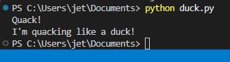 print("I'm quacking like a duck!")