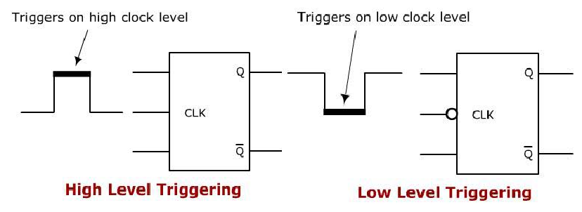 즉, 에지 트리거에서와 같이 에지에서 변경하는 대신 고전압 또는 저전압 기간 동안 출력이 변경된다.