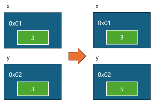- 값 타입(int, struct 등) : 해당 값 자체를 변경할 수 없음