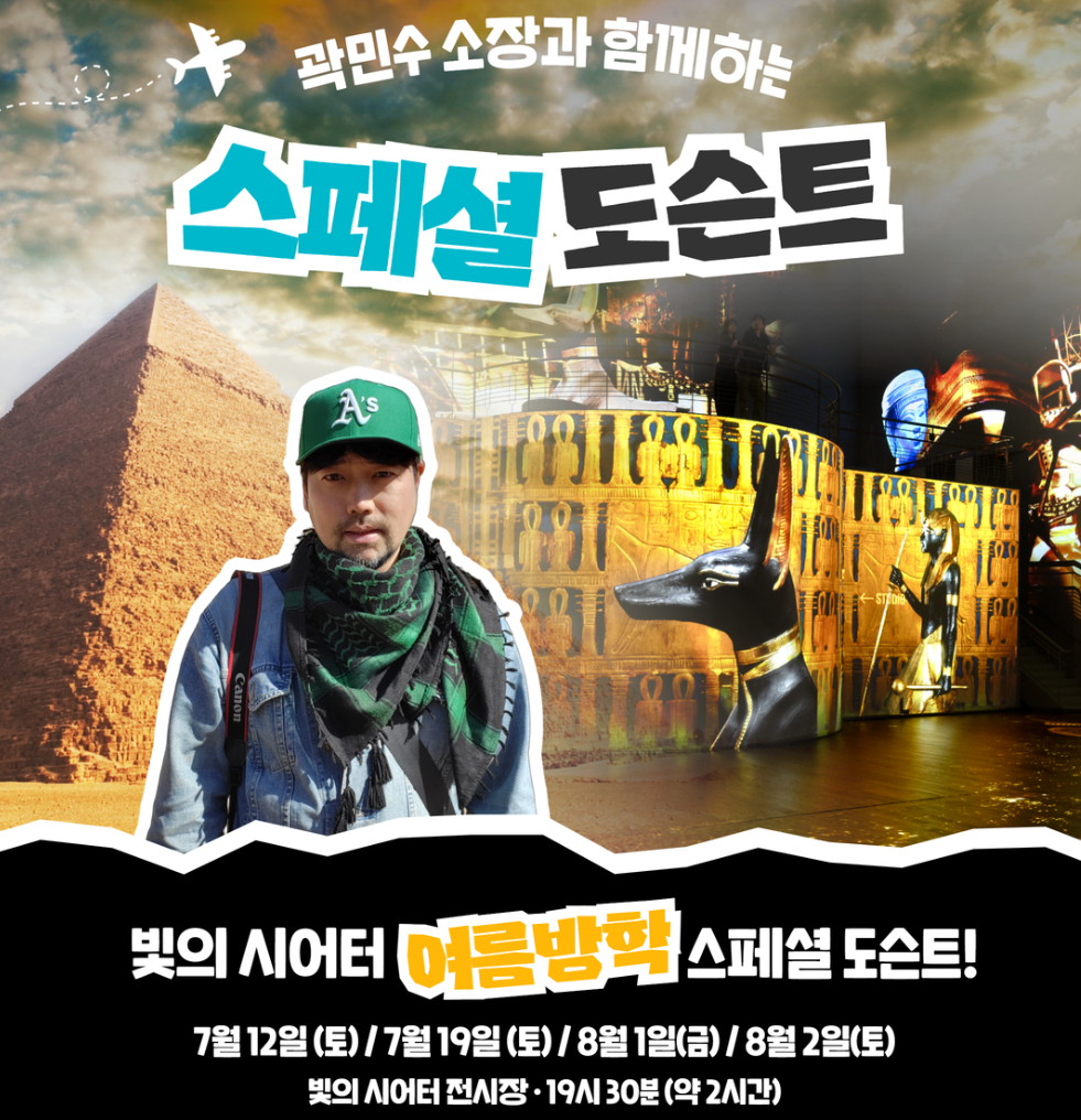 국내 거의 유일의 이집트학 전공자인 곽민수 소장님이 스페셜 도슨트를 진행한다는 이야기를 지인에게 듣고서는 어디에서 하고 어떤 전시인지 생각하지 않고 바로 예매를 진행했다. 사실 그 정도로 이집트를 좋아하거나 관심이 있는 건 아니지만, 곽민수 소장님을 한번 지근거리에서 보고 싶은 마음이 컸다. 침착맨 채널이나 안될과학에서 몇 번 이집트 관련 영상에서 봤는데, 수염과 푸근한 이미지 그리고 이집트 전문지식이 어우러져 멋진 사람이라고 생각했기 때문이다.