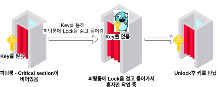 쉽게 말하자면, 화장실(공유 자원)이 하나뿐인 카페에서 화장실 열쇠(Mutex)를 가진 사람만 안에 들어갈 수 있게 제한하는 것이다.