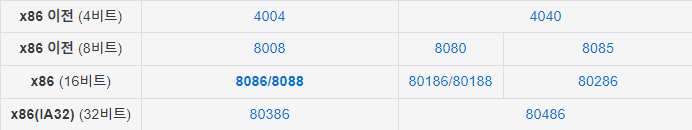 - x86은 사실 아키텍처의 이름이다. 86으로 끝나는 이름의 프로세서들은 해당 아키텍처가 적용되어 있다.